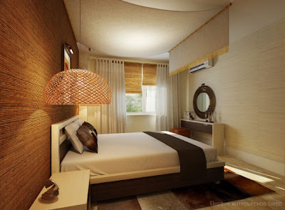 Kebinatangan karpet nada dan cermin echo desain furnitur dan tempat tidur. Sebuah wallpaper terbuat dari serat alami dan kanopi simulasi.Bentuk sederhana terkendali furnitur dan kurangnya hampir lengkap dari dekorasi pada fasad lemari sempurna bertepatan dengan estetika gaya Skandinavia, dan lampu gantung cahaya membuat unsur elegan dari permainan. Dinding - aksen, sisa dinding - warna yang berbeda, juga relatif dingin (abu-abu kecoklatan).
